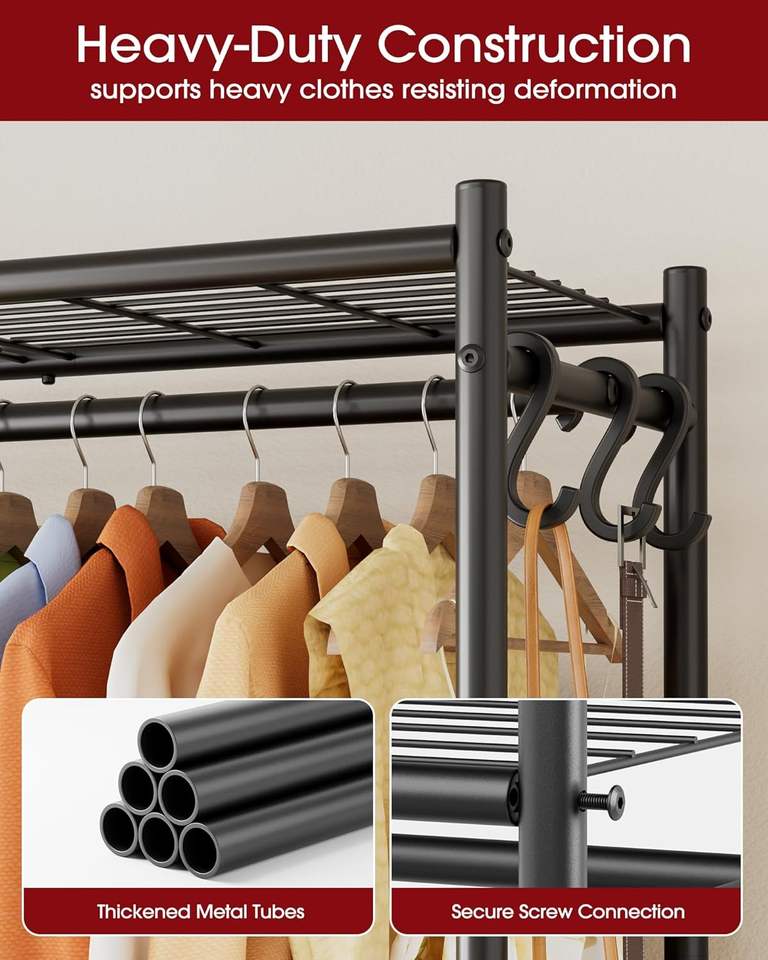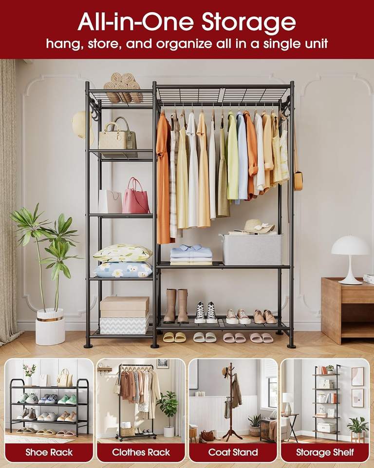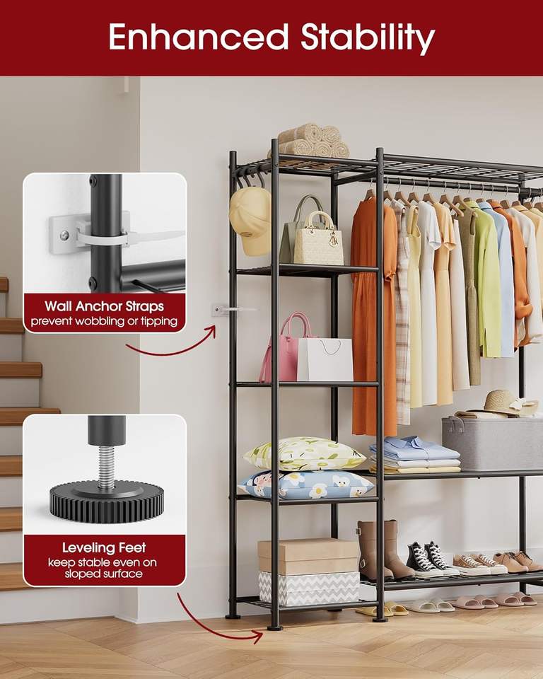Organizadores y Almacenamiento para Armarios - Perchero Independiente con Patas Niveladoras y Correas de Anclaje a la Pared, Armario con 6 Ganchos