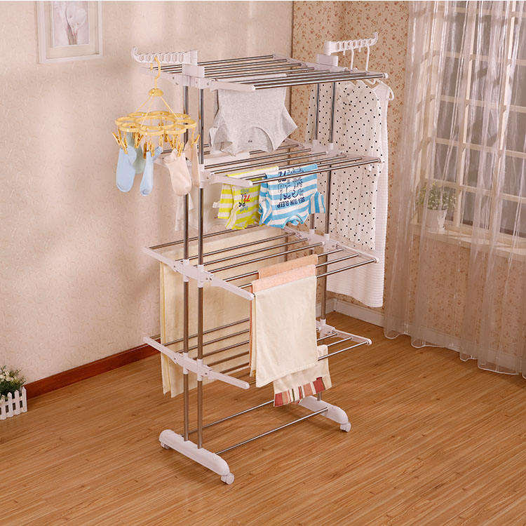 Tendedero Plegable de 3 Niveles para Ropa, Tendedero de Acero Inoxidable con Dos Alas Laterales