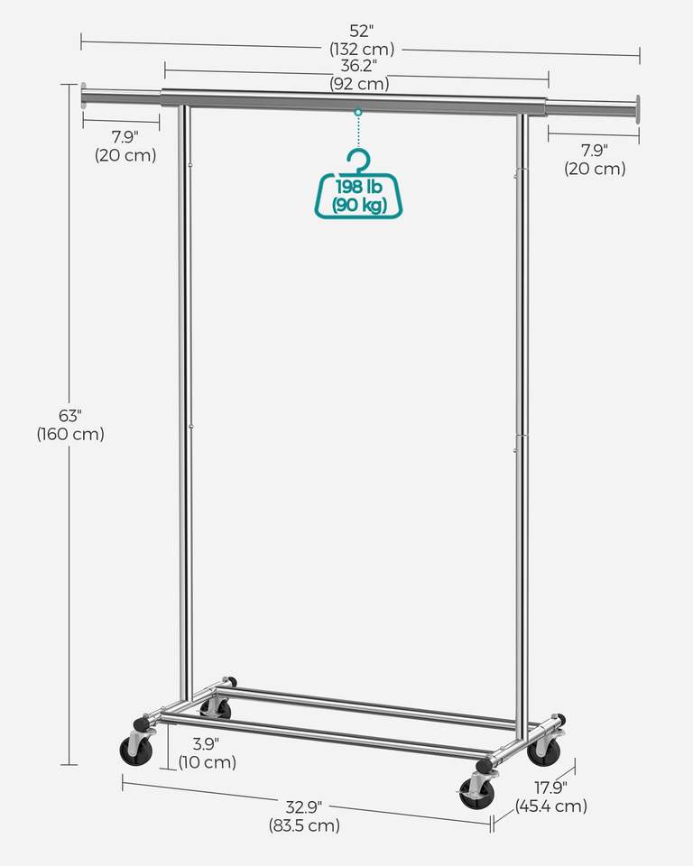 Perchero portátil de acero al carbono ecológico de alta resistencia con ruedas Riel colgante extensible Soportes de almacenamiento de diseño desmontable