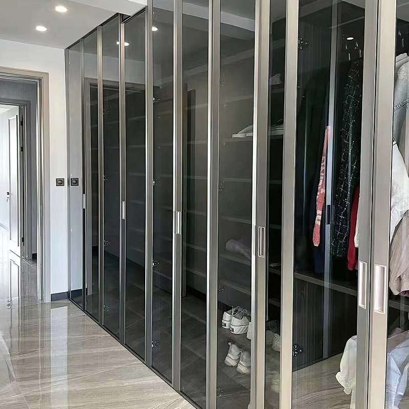 Almacenamiento de ropa de aluminio para armario portátil cajas de vidrio 6 puertas pareja gabinete tela almirah en la pared guarda roupa Casal