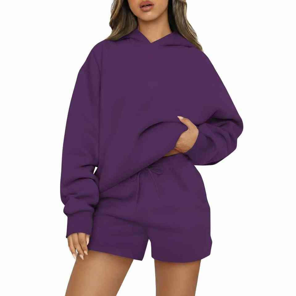 Conjunto de Sudadera con Capucha y Pantalones Cortos de Dos Piezas Personalizado para Mujer, 100% Algodón