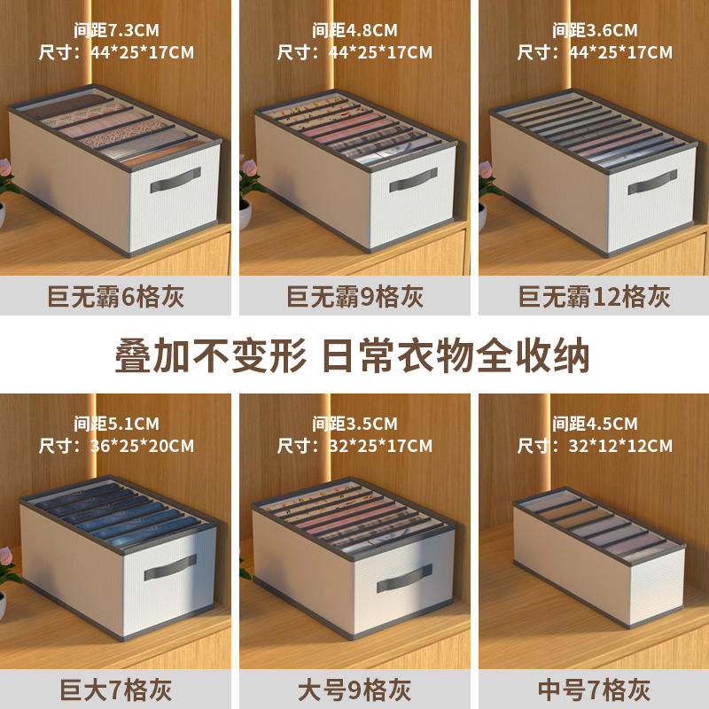 Organizador de ropa estilo cajón, plegable y apilable, con compartimentos para almacenamiento en armario.