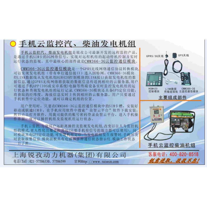 Generador Diésel con Monitoreo en la Nube CMM366-3G, Control Remoto por Aplicación Móvil, 5-20KW, 50-60Hz, Motor RZ195-FD, Fabricado en Shanghái