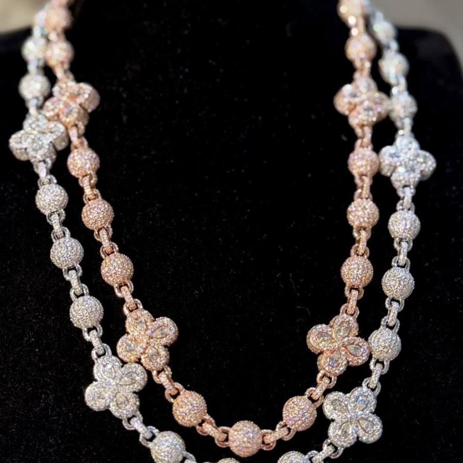 Collar de Plata Maciza con Cadena Cubana en Forma de Trébol con Cadena de Bolas y Diamante Moissanite VVS para Joyería Hip Hop Masculina