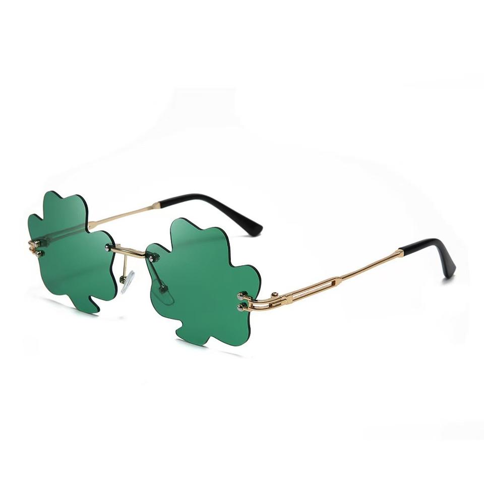 Gafas de sol Clover Shield sin montura, verdes, unisex, ligeras, decorativas para el Día de San Patricio, con espejo, sin marco, de metal