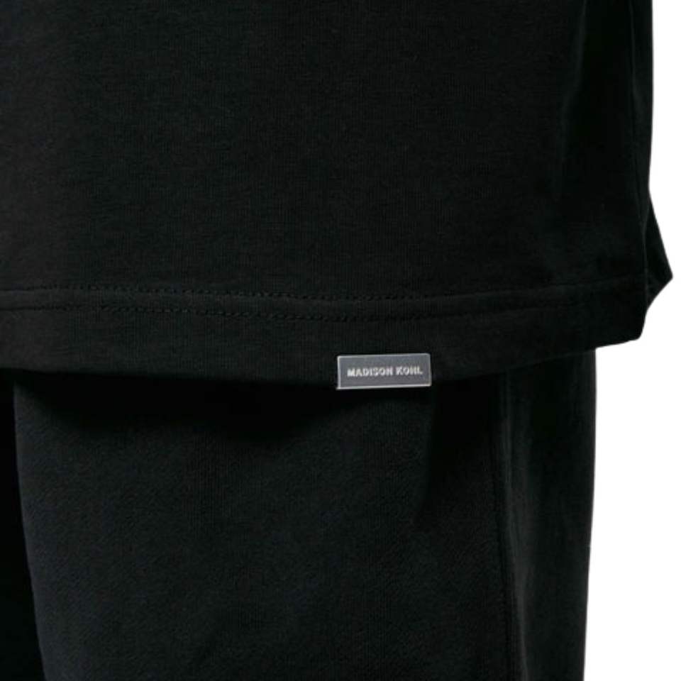 Club camiseta de gran tamaño negro 300 GSM algodón peso medio Jersey ajuste relajado Boxy hombro caído cuello acanalado ropa de calle de lujo
