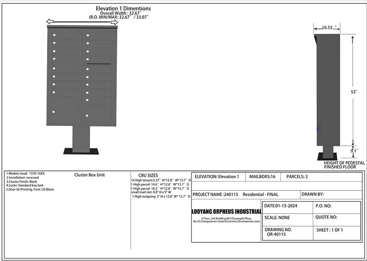 Buzón de Paquetería con 16 Puertas y 2 Casilleros para Paquetes en Color Negro con Función de Buzón de Correos USPS