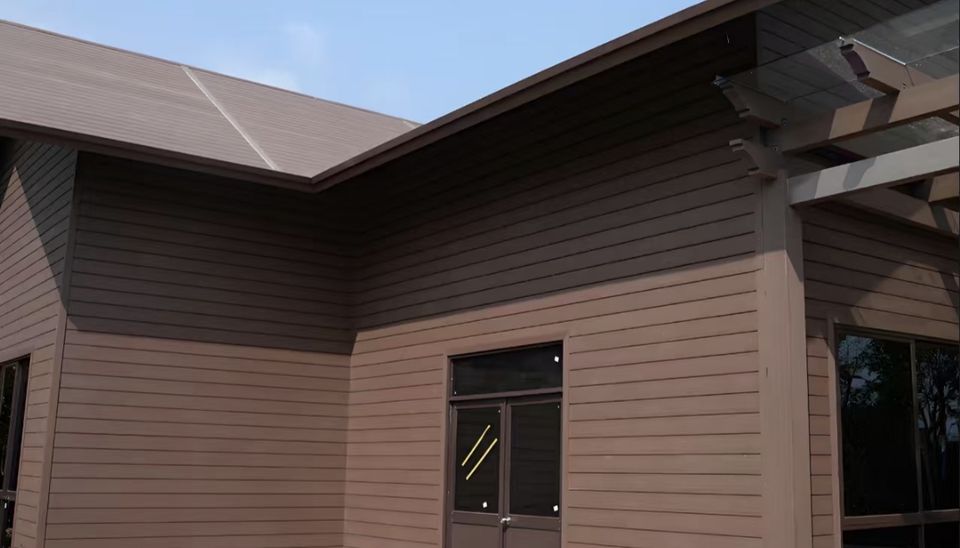 Revestimiento de Pared Exterior Moderno con Sistema de Cierre por Clic, Compuesto de Plástico WPC Coextruido, Paneles Sándwich Decorativos para Terraza con Acabado Cepillado