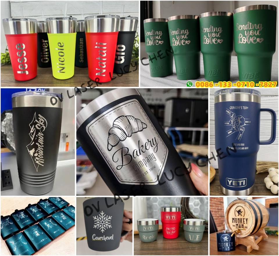 Láser de CO2 con Mesa Giratoria para Vasos, Láser de CO2 de 40w, Grabador Láser de CO2 para Vasos, Tazas, Botellas y Jarras