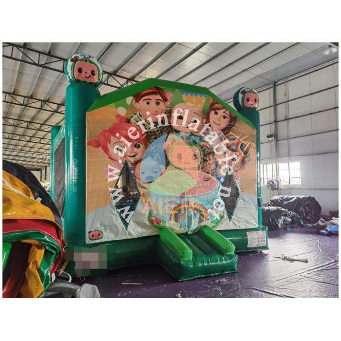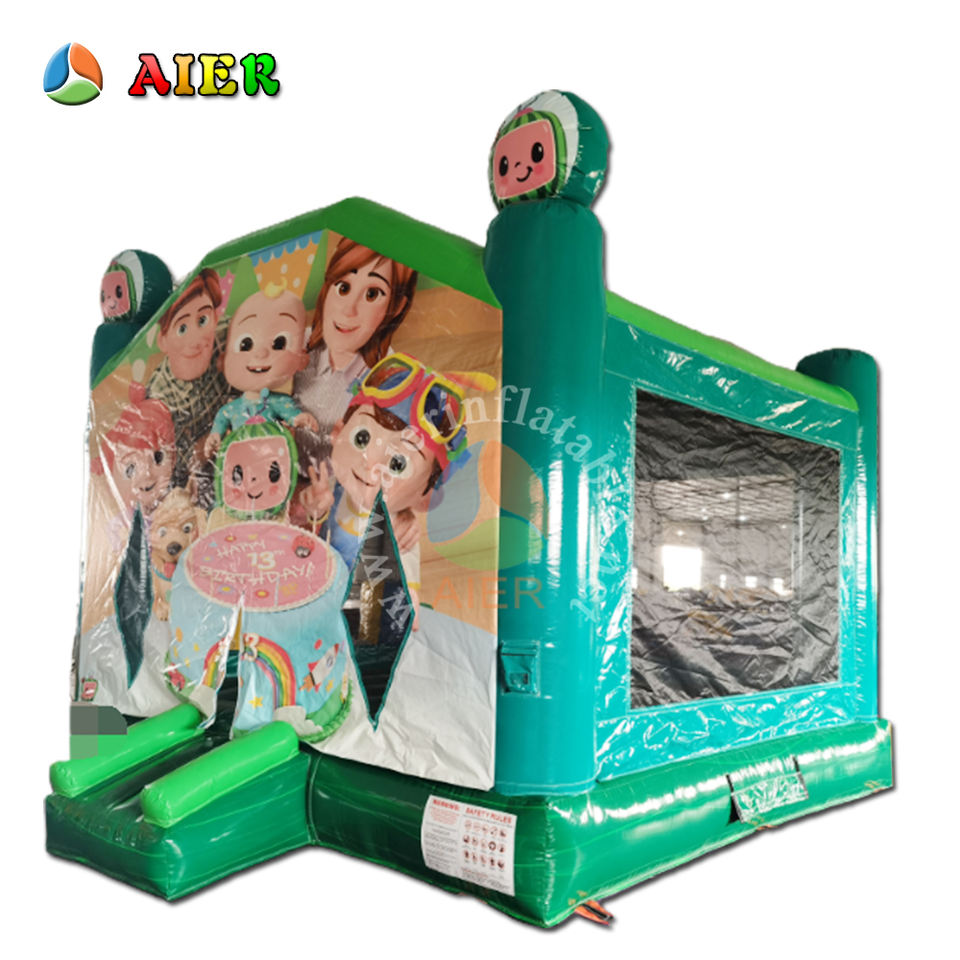 Casa de Brinco Inflable con Temática de CoComelon, Cama Elástica Verde para Niños con Adornos de Sandía, para Fiestas de Cumpleaños en el Patio Trasero, Actividad de Juego