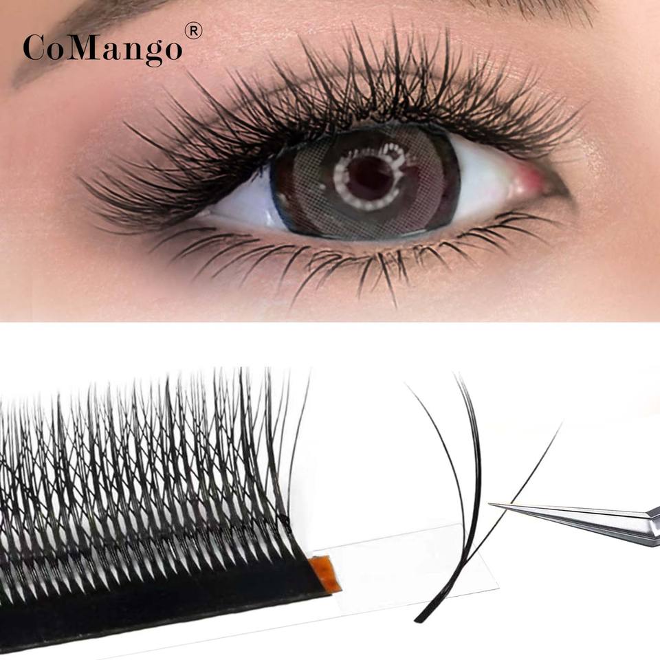 Pestañas Postizas CoMango 3D W+ con Forma de Triple Punta, Extensiones de Pestañas Negras con Forma de W, Súper Suaves