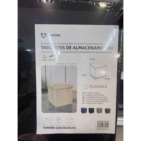 Taburete de Almacenamiento de Lino Grueso, 38*38*35cm, Otomana Plegable de MDF para Dormitorio, Extraíble, para Bebés y Niños, Color Café