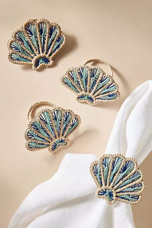 Anillo para Servilletas de Concha Marina de Ratán Costero, Decoración de Mesa Tejida Natural con Tema Playero, Decoración de Mesa Bohemia Rústica Hecha a Mano