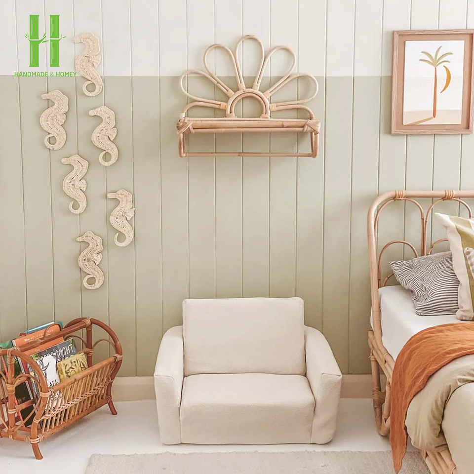 Ganchos de Ratán para Pared para Niños y Bebés, Modernos, Ecológicos y Sostenibles para Colgar Abrigos y Ropa