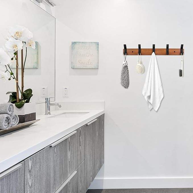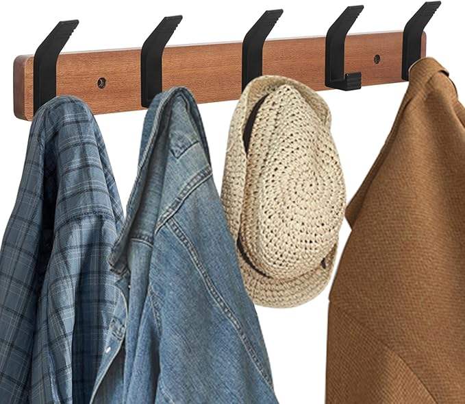 Perchero montado en la pared Perchero largo para colgar en la entrada con ganchos y rieles decorativos de madera de aluminio de madera