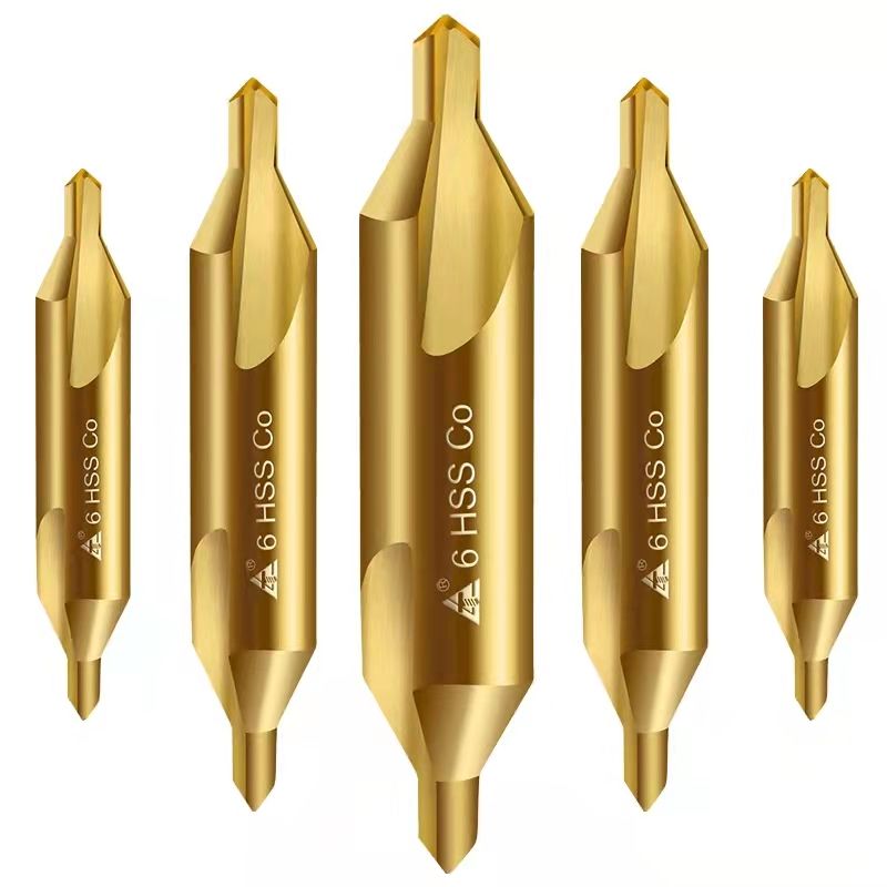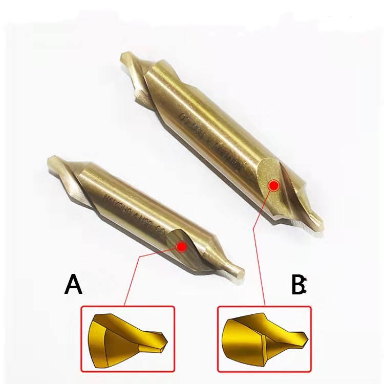 Broca de Centrar Cobalt con Recubrimiento TIN, Ranura Espiral, Completamente Rectificada, Tipo AB 1/2/3/4/5/6 M35 M42, Broca de Posicionamiento de Punto Fijo