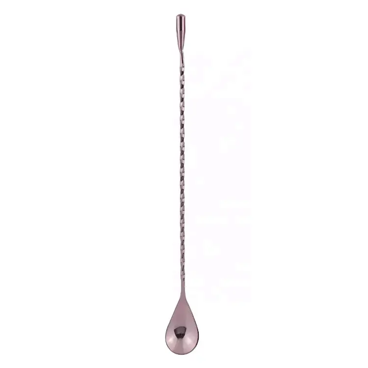 Cuchara de cóctel en forma de lágrima, cuchara de Bar de diseño torcido con acabado de oro rosa, mezclador de cóctel, fabricante agitador con mango largo