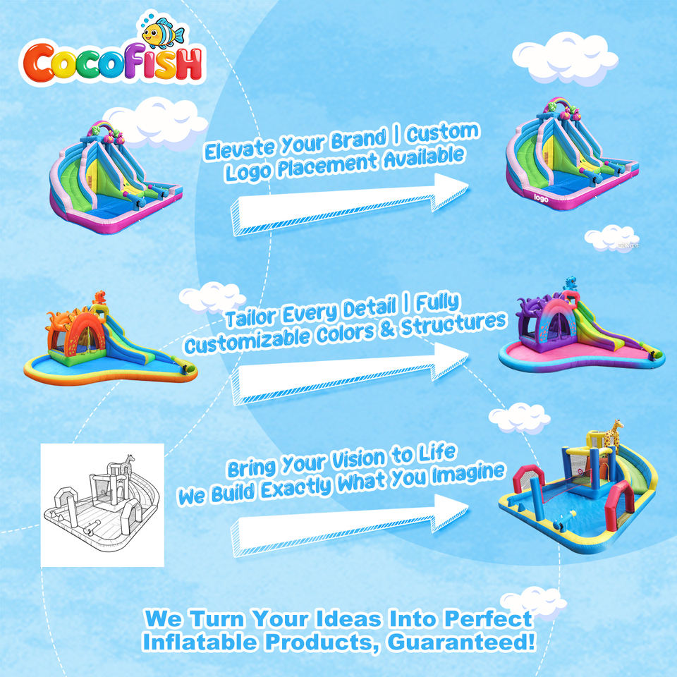 Casa de Brinco Inflable Cocofish Flamingo Rainbow con Toboganes, Pared de Escalada, Piscina y Pistolas de Agua Dobles para Niños