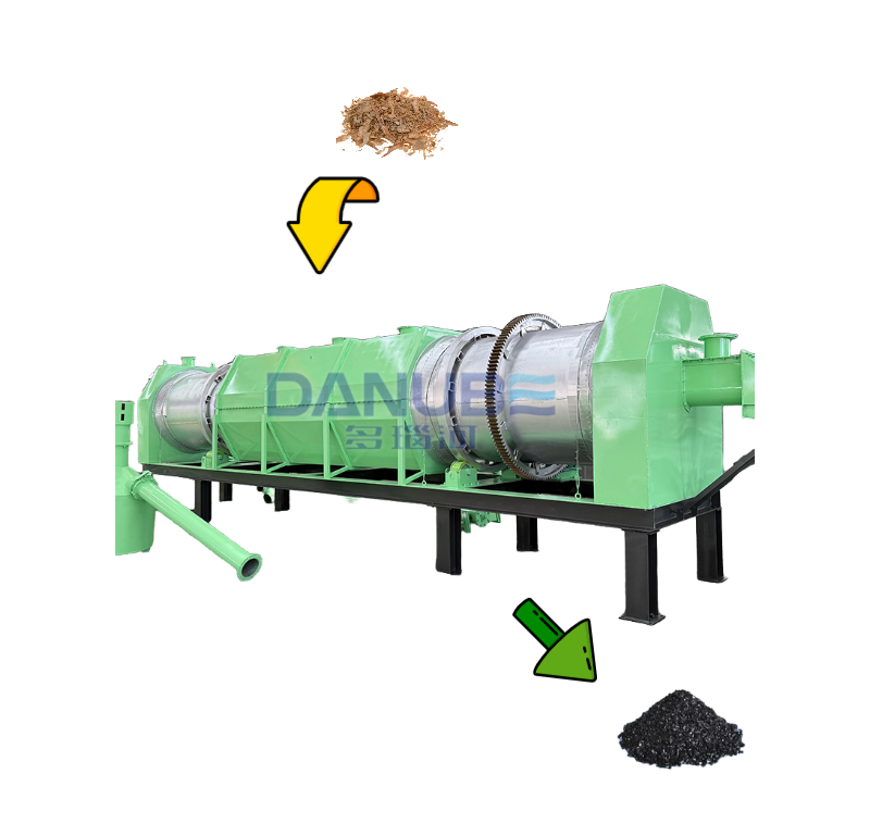 Chips de cáscara de coco, Material de aserrín, horno de carbonización, horno de carbón rotativo continuo, equipo de estufa de carbonización de cáscara de arroz