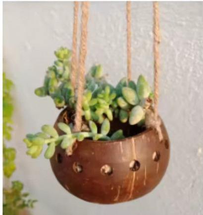 Maceta de Cáscara de Coco con Base de Madera, Hecha a Mano, Ecológica, Natural, para Decoración de Jardín Interior, Venta al Por Mayor