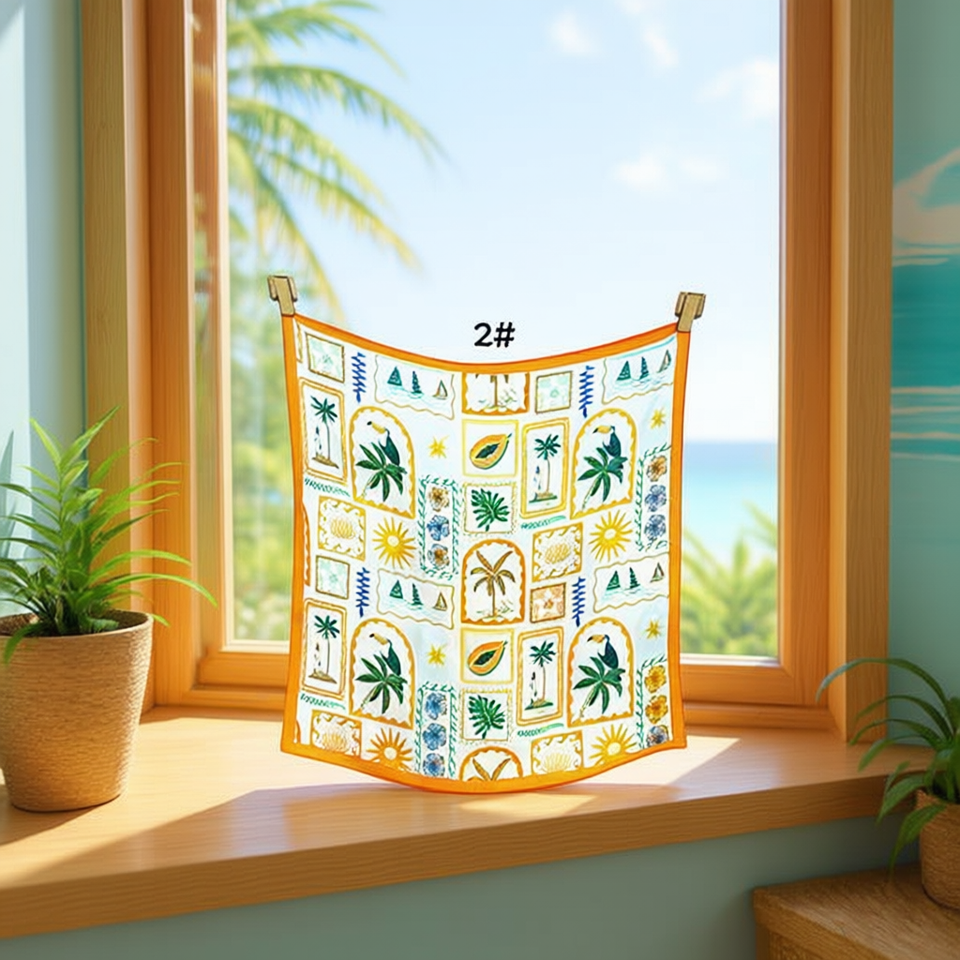Pañuelo con diseño de palmera de coco, 70x70 cm, para ventana, pañuelo cuadrado con diseño multicolor