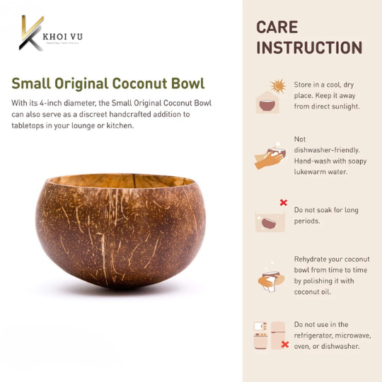 Tazón de Coco Crudo, Estilo Bohemio Vintage, Ecológico, Hecho en Vietnam, con Diseño Moderno y Personalizado, de 10 a 13 cm