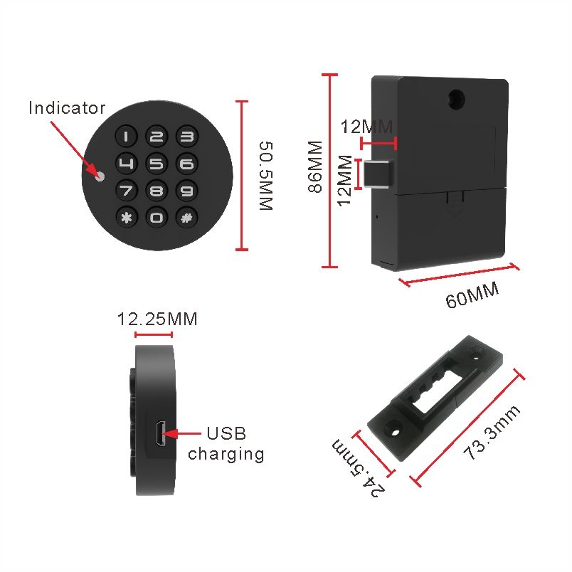 Cerradura Electrónica Digital para Gabinete con Número de Código, Interfaz USB, Puerto de Carga, Combinación de Contraseña para Armario