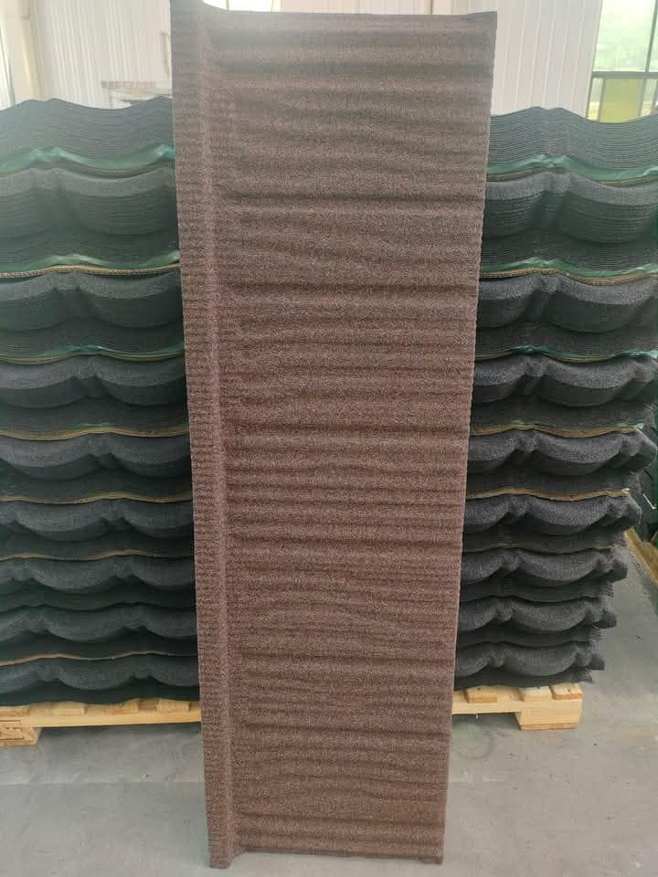 Azulejo de sacudida de madera de color café, tejas recubiertas de piedra de alta resistencia de 0,6mm con bandeja de Valle y tablero facial