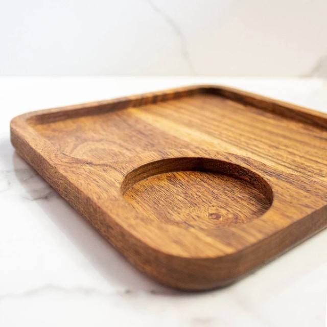 Plato de madera para galletas de café, bandeja para servir, plato de aperitivo cuadrado de madera de Acacia Natural, tablero de desayuno rústico, comida hecha a mano