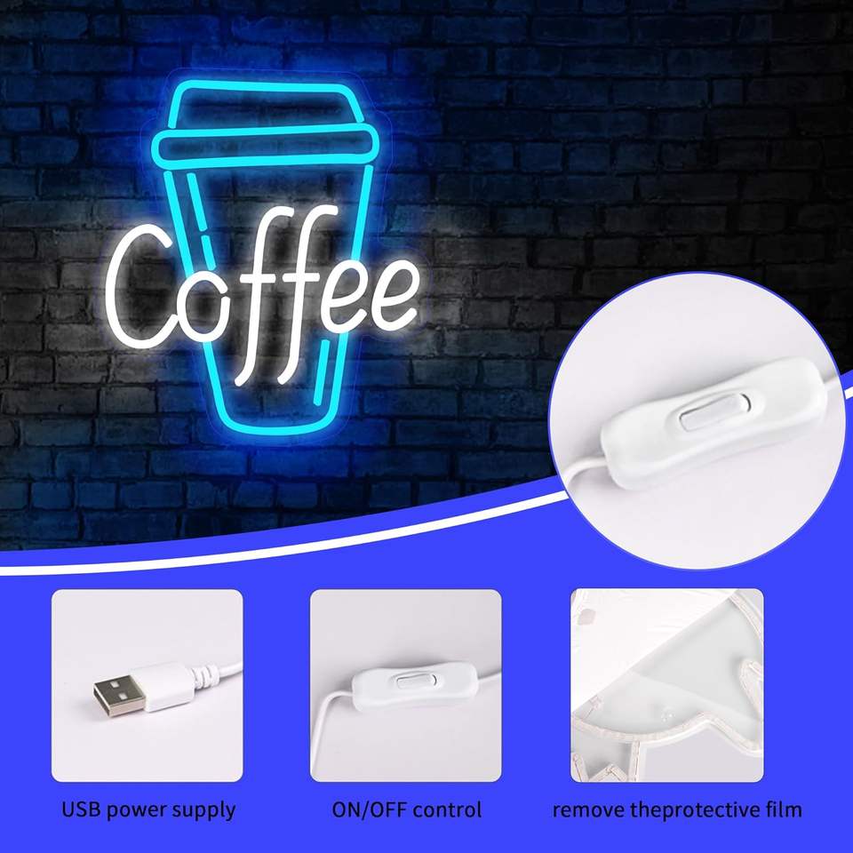 Letrero de Neón LED con Diseño de Café para Decoración de Paredes, Luz LED Brillante para Cafetería, Tienda, Restaurante, Bar