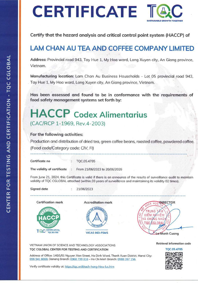 Lam Chan Au Coffee Powder Precio razonable Ingredientes alimentarios Sin químicos y conservantes Saludable de alta calidad