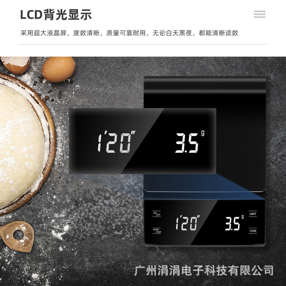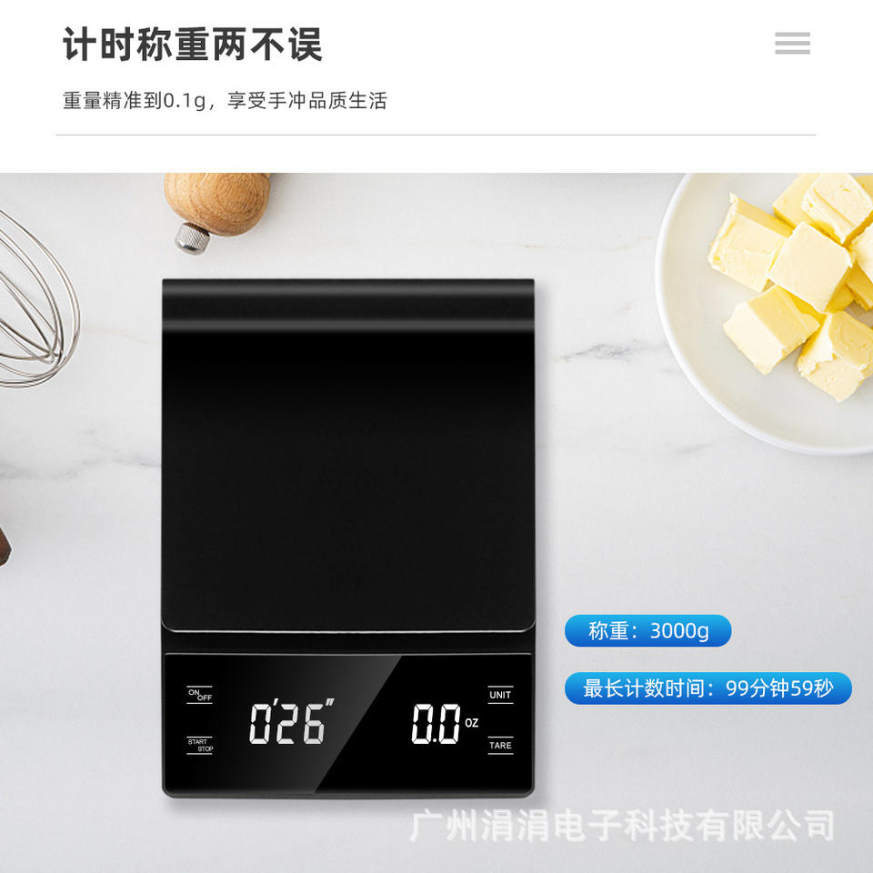 Báscula de Café con Pantalla Digital, Báscula de Cocina de 3 kg, Báscula de Mesa Multifuncional para el Hogar