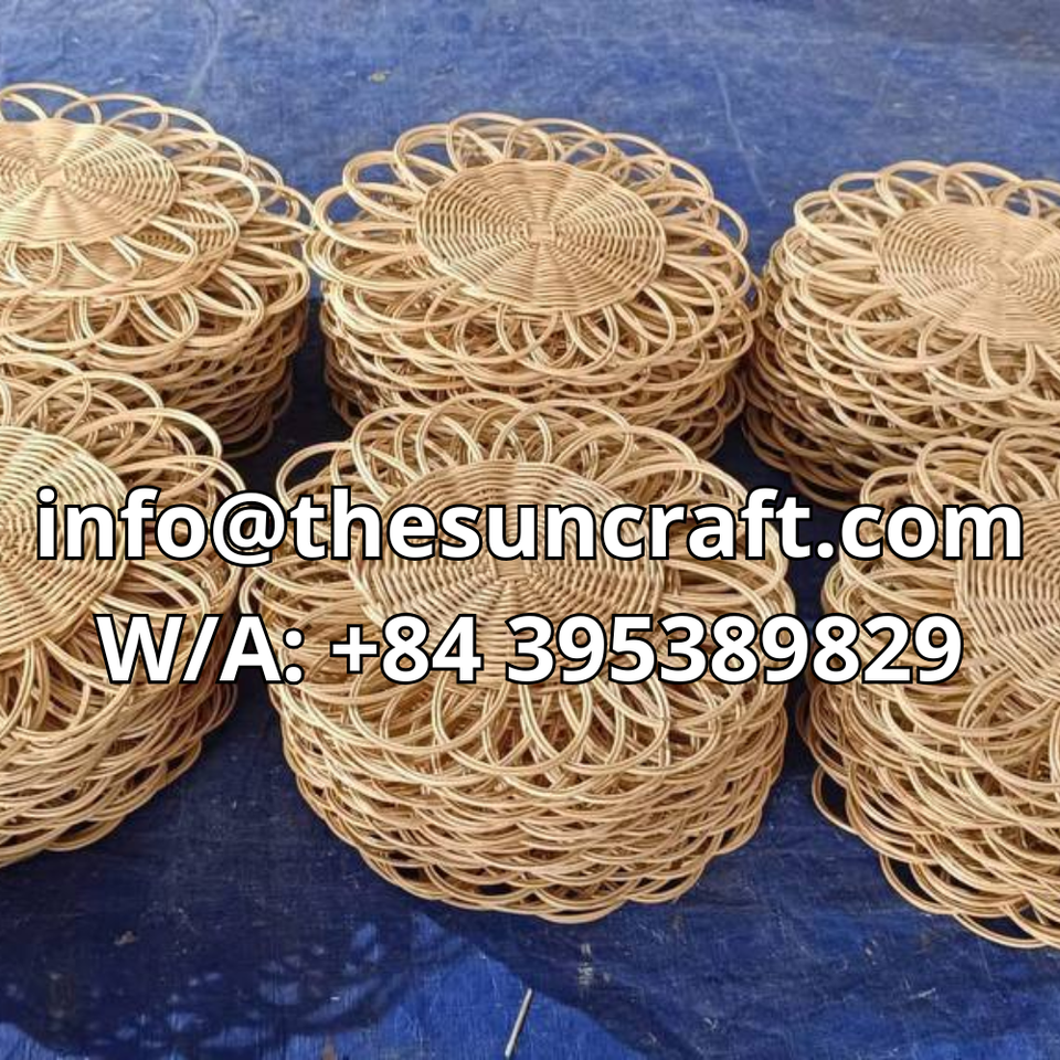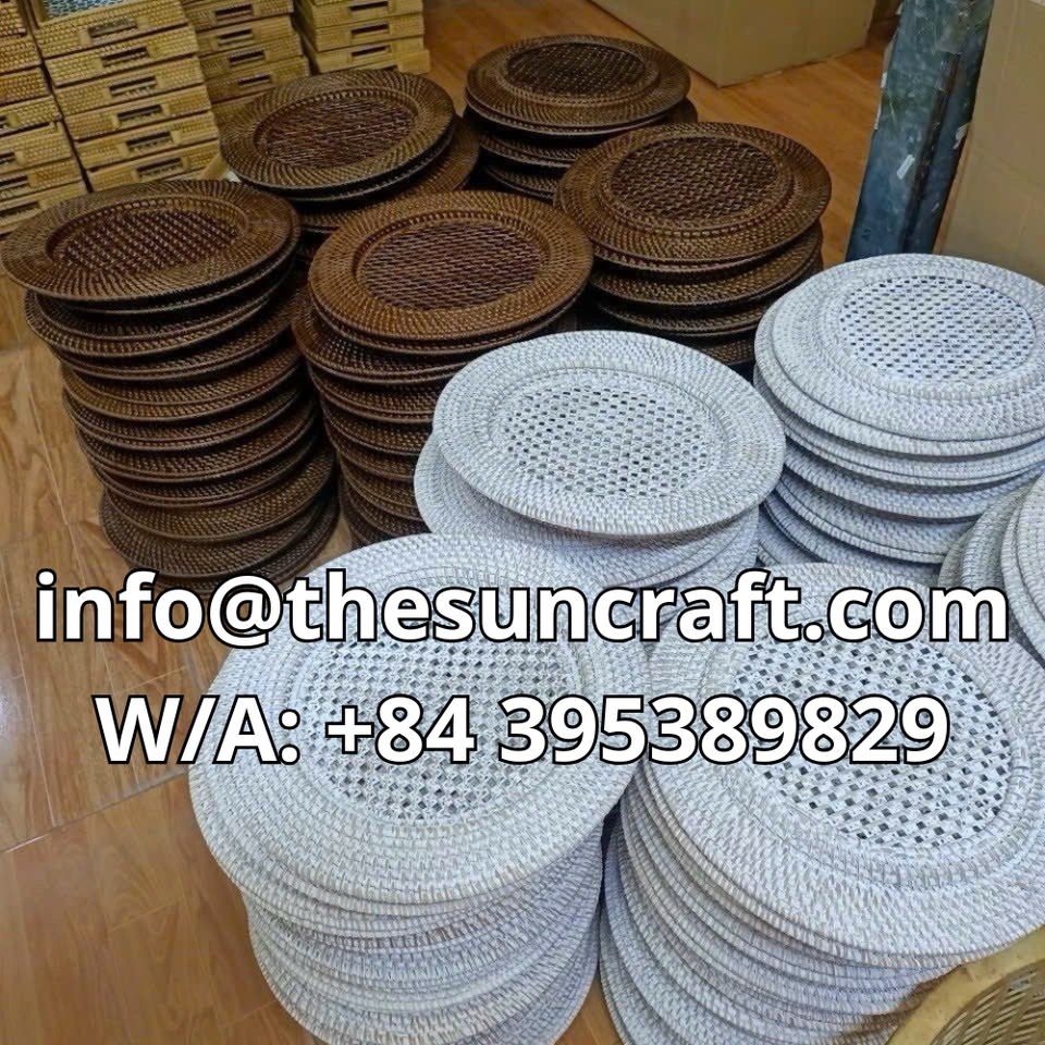 Mantel Individual de Ratán para Cafetería, Mantel Redondo Tejido a Mano para Decoración Rústica de Cafetería, Plato de Fibra Tejida Sostenible