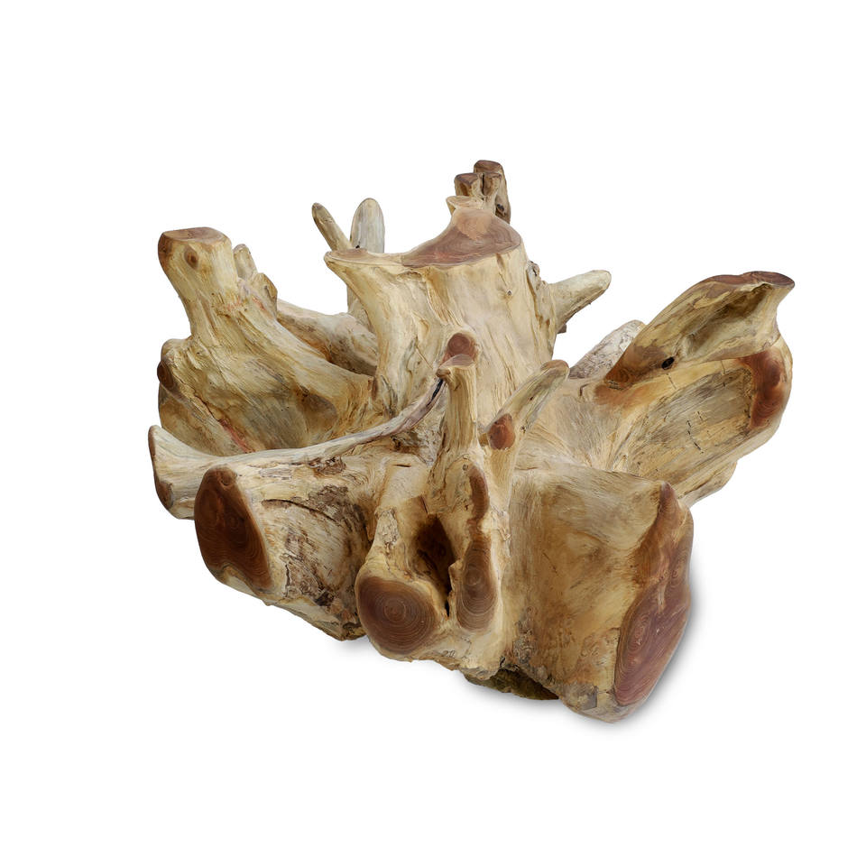 Mesa de Centro Redonda Tradicional de Madera de Teca Natural para Sala de Estar