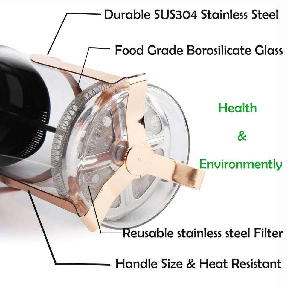 Material:Vidrio de Borosilicate + plástico + 18/8 acero inoxidable