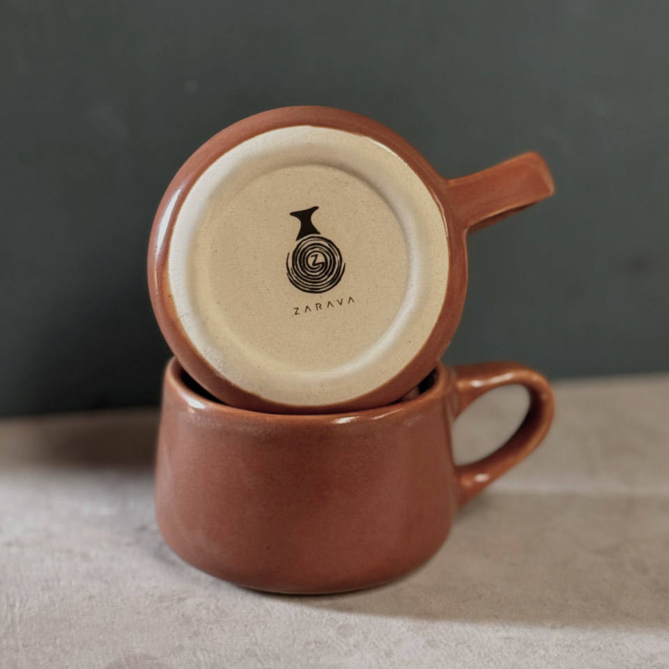 Taza de Cerámica Artesanal Resistente, Apta para Horno y Microondas, de Gres de Alta Cocción, para Café, Té y Agua, Color Canela, Diseño Apilable