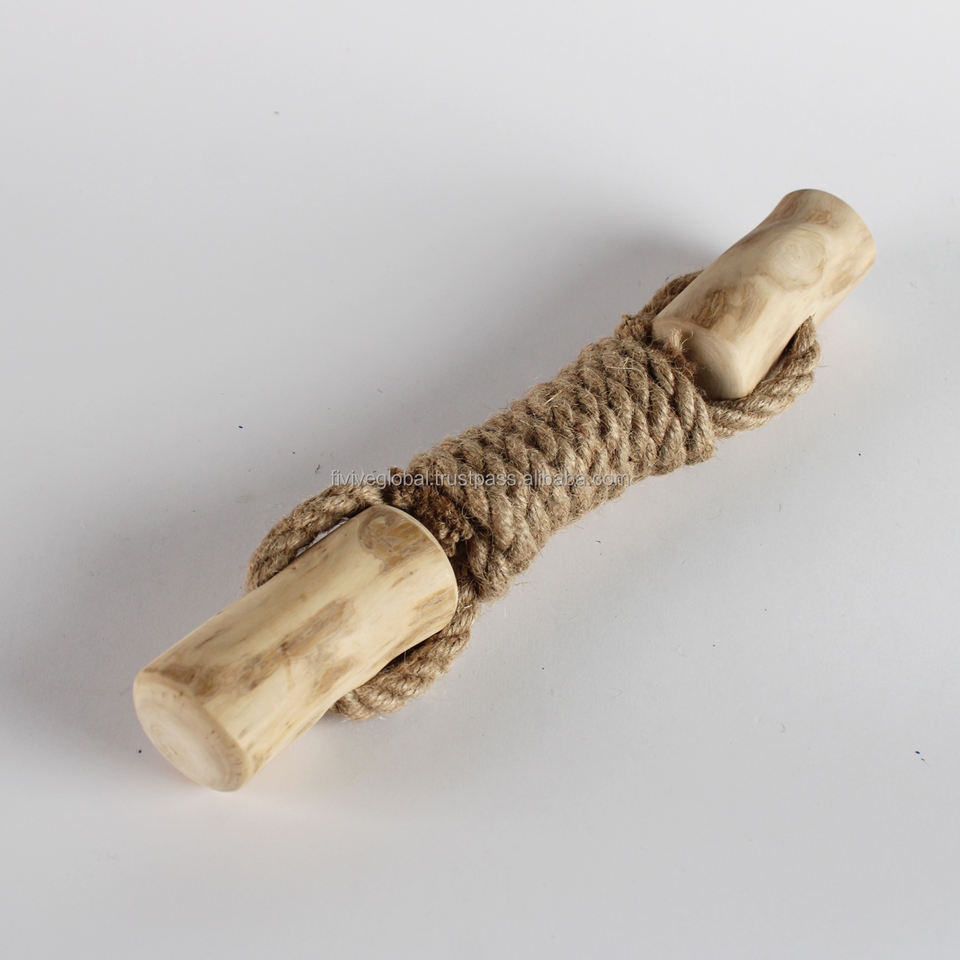 Juguete para perros Nunchaku de madera de café y cuerda de cáñamo, fabricado por un fabricante vietnamita, diseño resistente para masticar y entrenamiento interactivo.