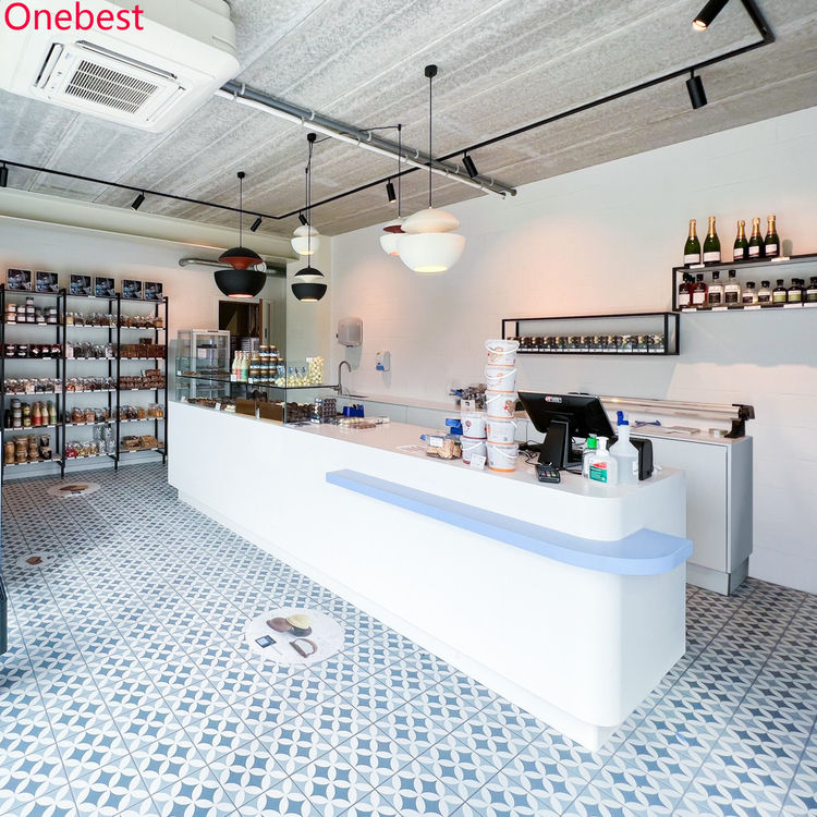 Mostrador de barra usado para cafetería y pan a la venta mostradores de recepción de piedra de superficie sólida duraderos blancos puros