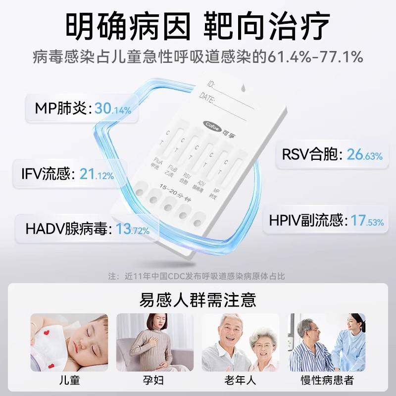 Tira Reactiva Cofoe para la Detección de Anticuerpos contra Patógenos Respiratorios, Gripe A y B, Adenovirus, Micoplasma Pneumoniae, 5 en 1, para Adultos, Muestra de Saliva