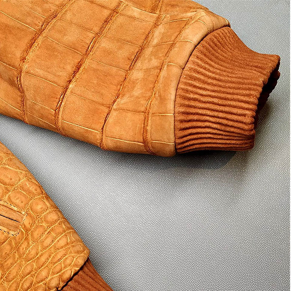 Chaqueta de Invierno Unisex Casual de Cuero Repujado Color Marrón Cognac, Cierre Frontal Completo con Cremallera, Impermeable y Ecológica