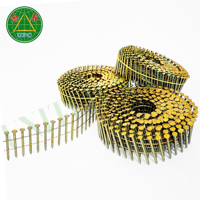 Clavos de bobina 1-1/4 "x 0.083 14000 piezas con revestimiento de Color amarillo de vástago suave para techos, fabricación de palés superventas de Vietnam