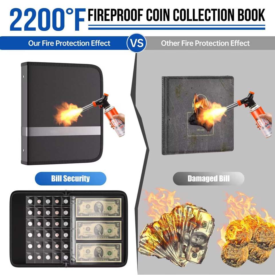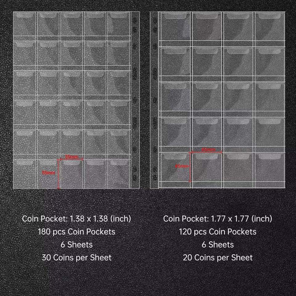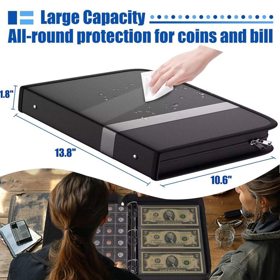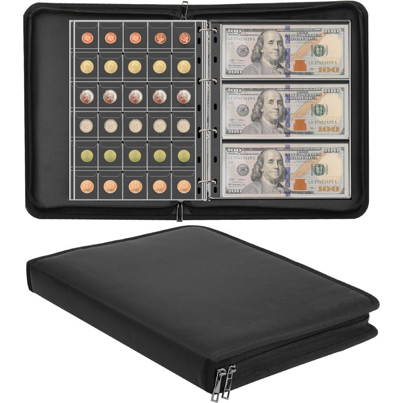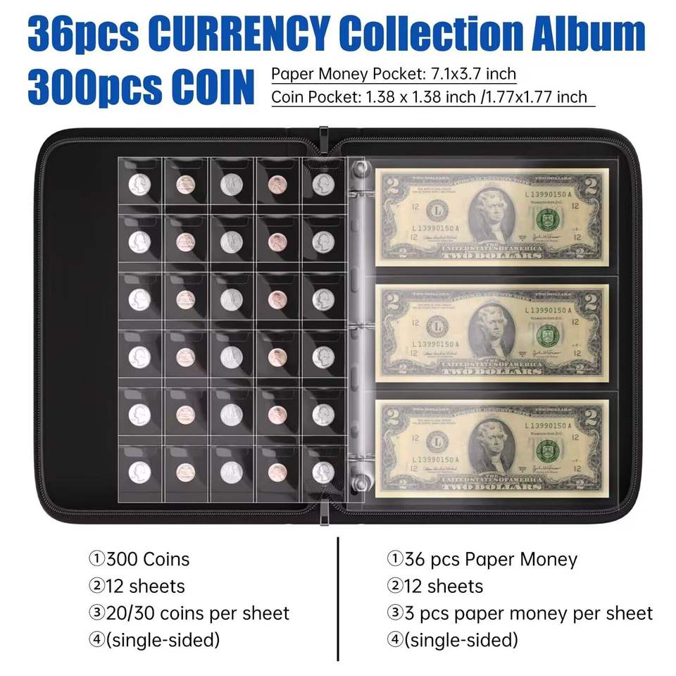 Álbum para Colección de Monedas, 300 Bolsillos, Resistente al Fuego, con 36 Fundas Protectoras para Monedas, Billetes y Sellos