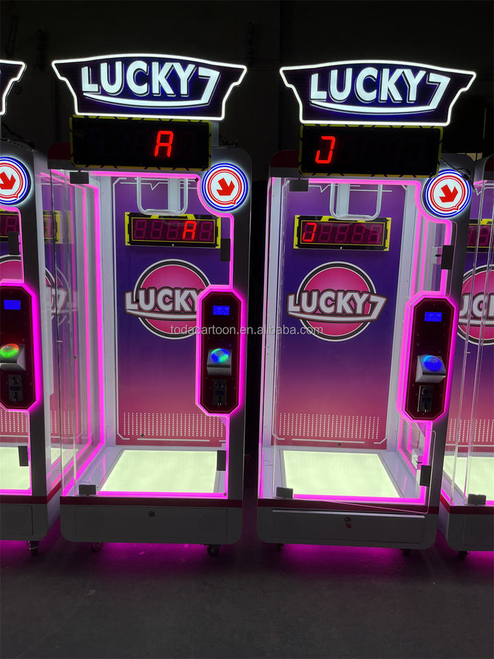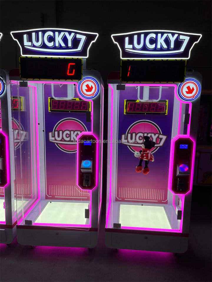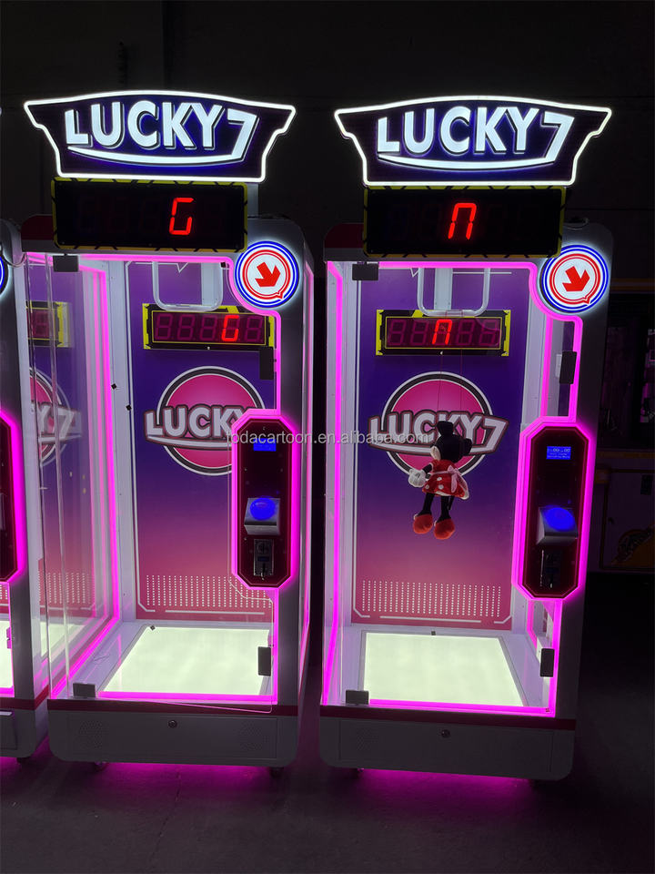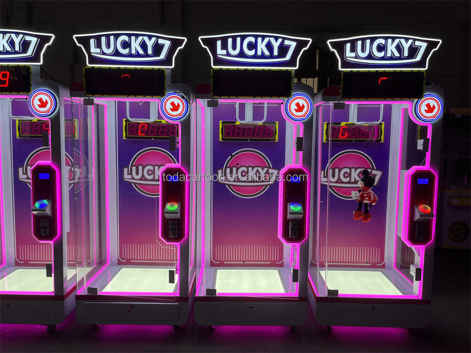 Máquina de grúa de juguete que funciona con monedas con máquina de juego Lucky Seven de palabras en inglés