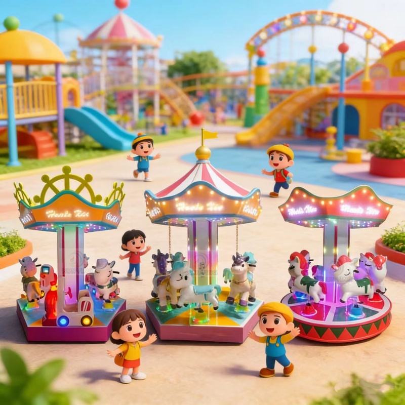 Carrusel de Monedas con Forma de Zebra, Carrusel Portátil Pequeño, Tiovivo para Niños, Carrusel de 6 Asientos para Niños