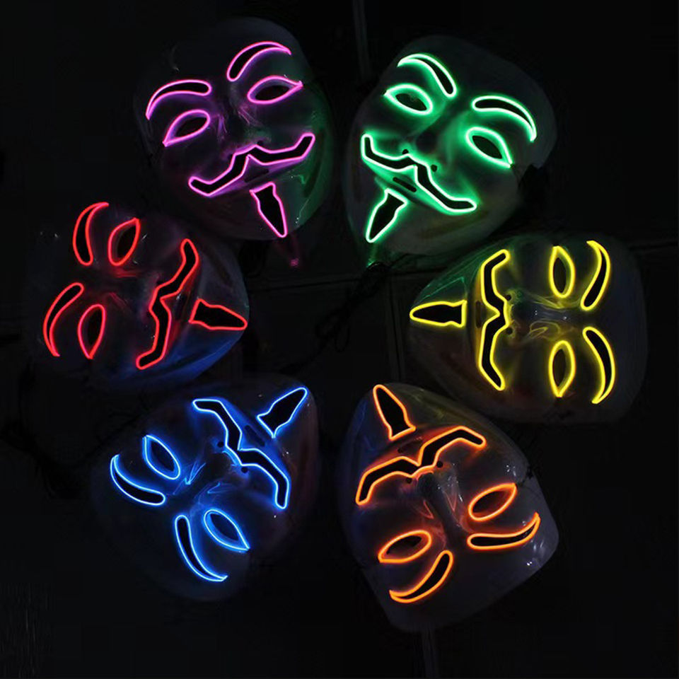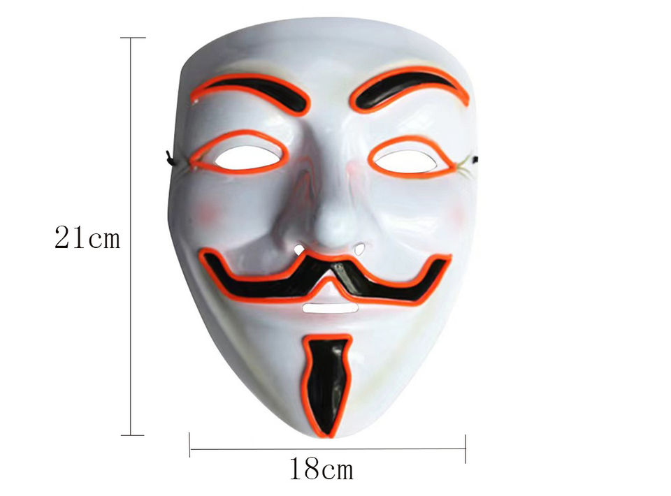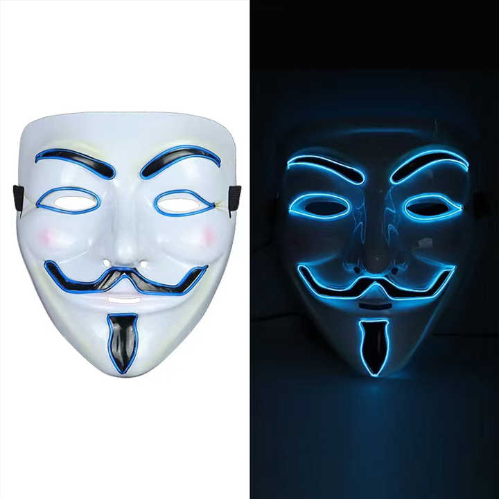 Máscara LED de Luz Fría Blanca en Forma de V para Fiestas, Máscara de Fantasma, Máscara de Terror