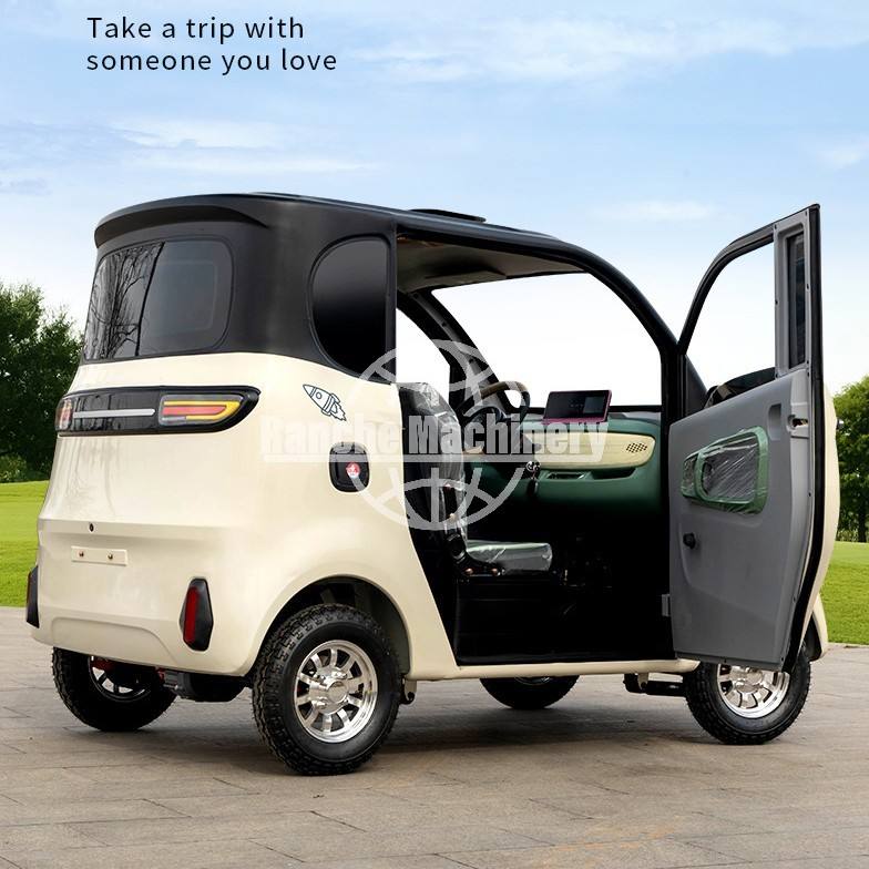 Coche eléctrico de baja velocidad adaptado para clima frío, con asientos calefactables y batería de litio de largo alcance para el viaje familiar en invierno.