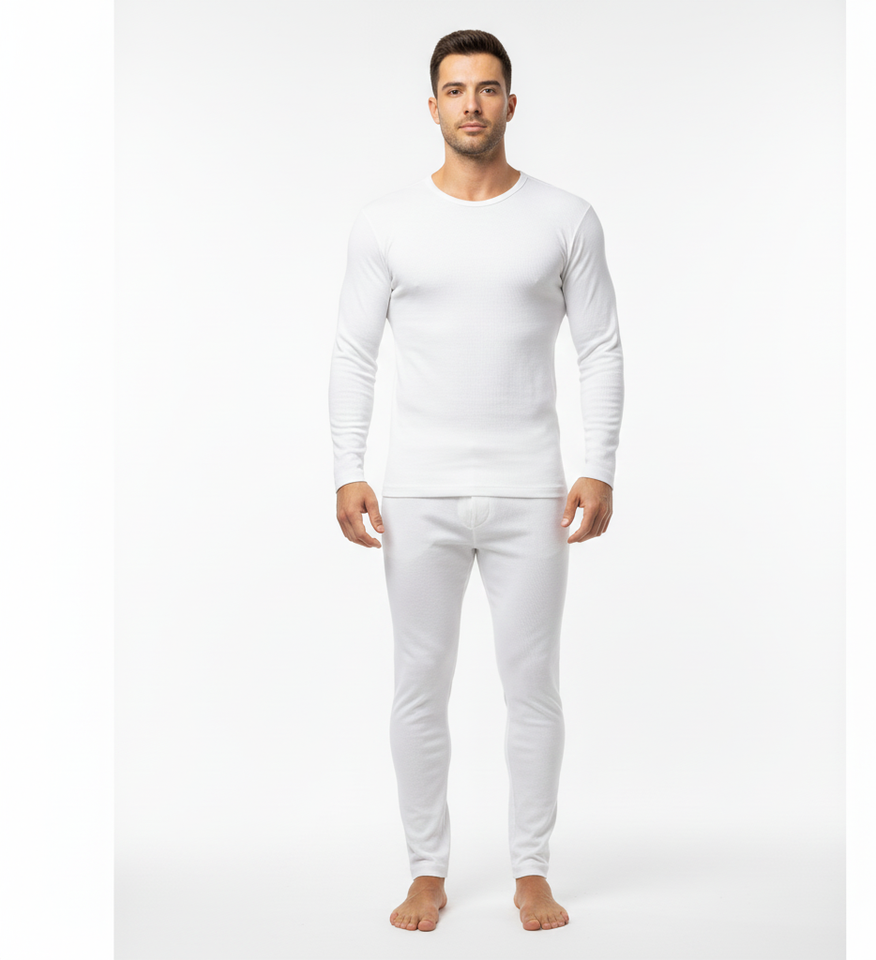 Traje Térmico ColdArmor Blanco Cálido para Hombre, Manga Larga, Suave, Retención de Calor, Capa Base de Invierno, Ajuste Cómodo