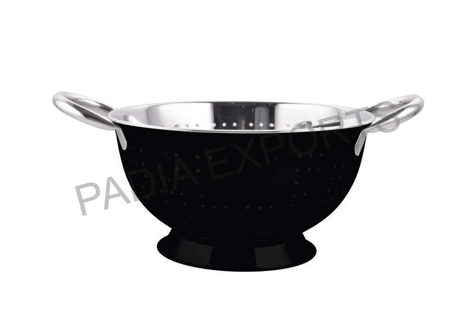 Colender negro con mango de acero inoxidable Refine su espacio culinario con una herramienta de metal duradera