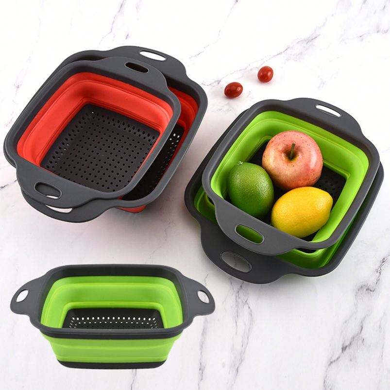 Colador plegable con coladores plegables de forma redonda y cuadrada para cocina con asas