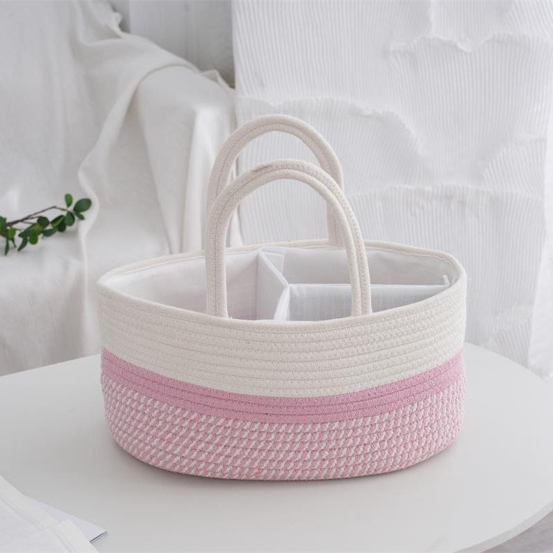 Cesta de almacenamiento de gran capacidad plegable con cuerda de algodón, organizador para pañales de bebé con divisor